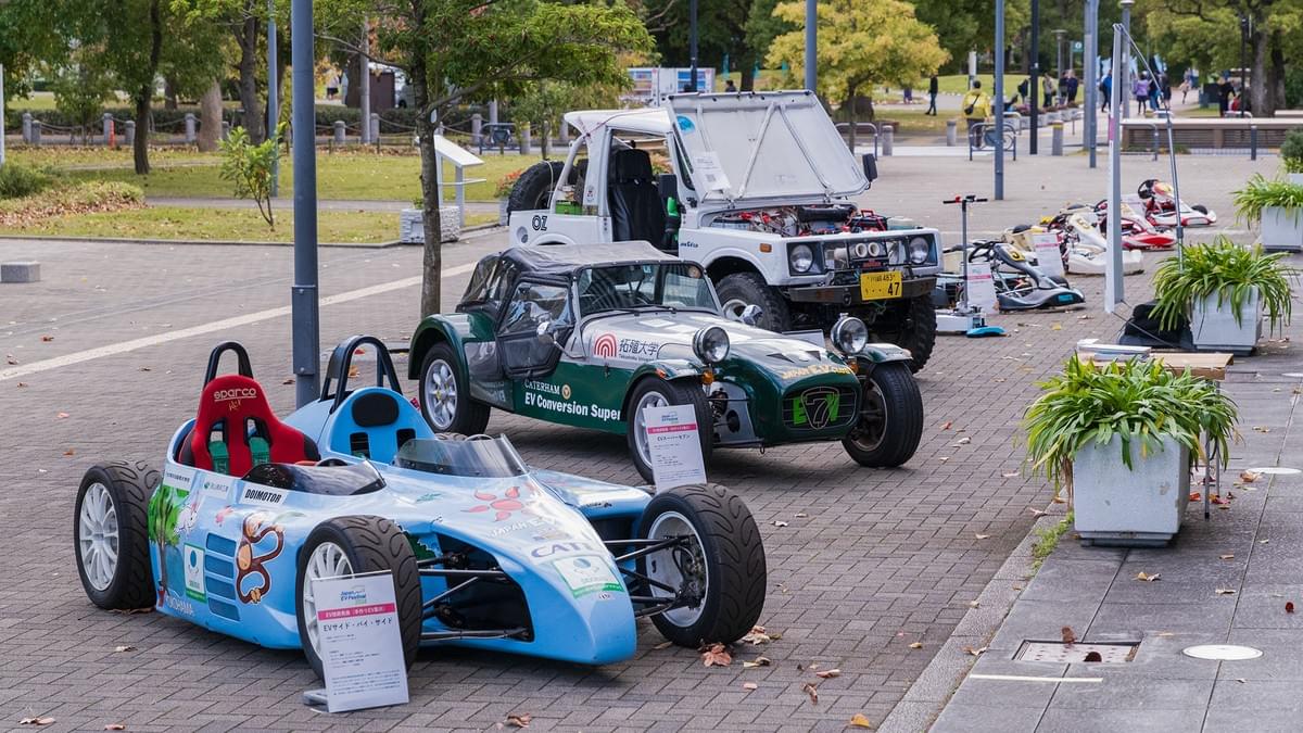 毎年フェスティバルで大人気なのが、日本EVクラブ会員による手作りEV展示です。2人乗り電気フォーミュラカーや高校生自作のオリジナルEV、市販車ベースのコンバートEVなど、見ているだけで楽しくなるラインナップはEVフェスティバルだけ!